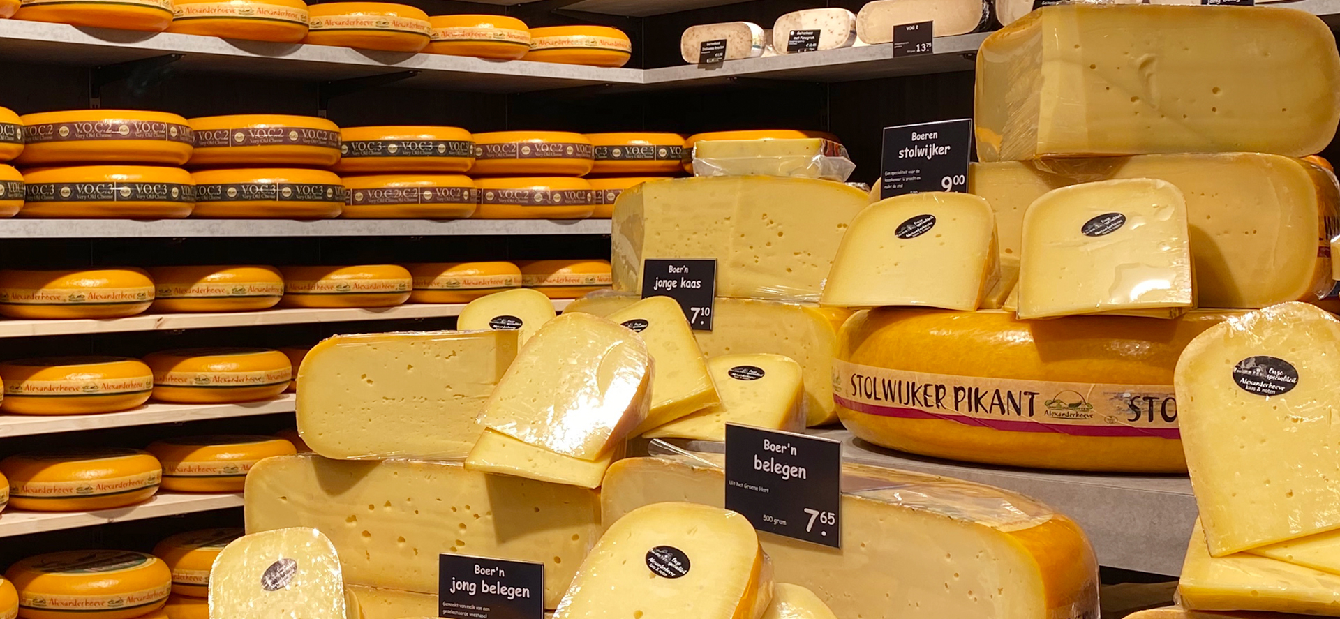 In onze prachtige winkel kun je terecht voor meer dan honderd soorten Hollandse kaas afkomstig van verschillende fabrieken.